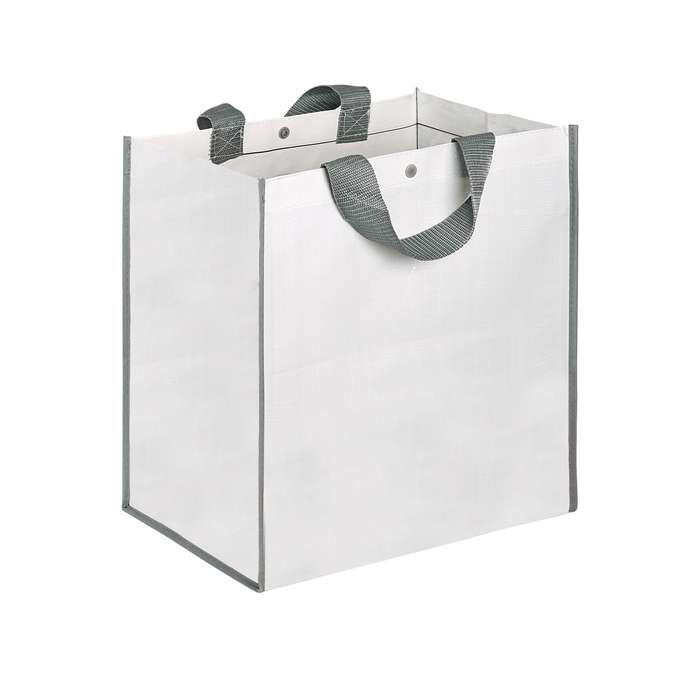 borsa shopping con soffietto, chiusura con bottone, manici in nylon, tecnica di stampa consigliata: serigrafica