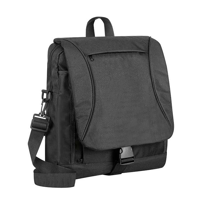 zaino/tracolla in poliestere 600D, tre tasche con zip e tracolla, vano interno porta pc (15,6 pollici), cm 32 x 38 x 9,5 ca