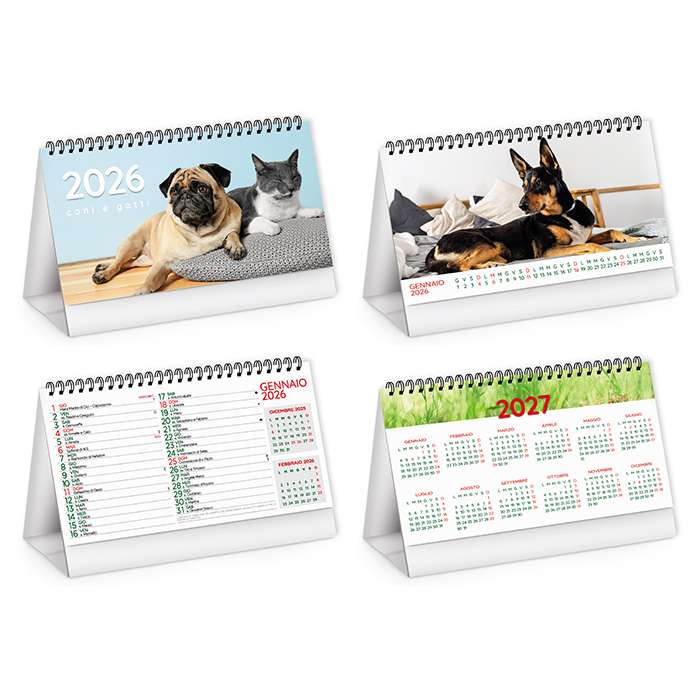 calendarietto spiralato da tavolo, illustrato mensile 13 fogli, carta avorio 90gr, tabella anno 2024 in ultima pagina, festività internazionali, supporto cartoncino bianco, tecnica di stampa consigliata: adesivo digitale - serigrafica