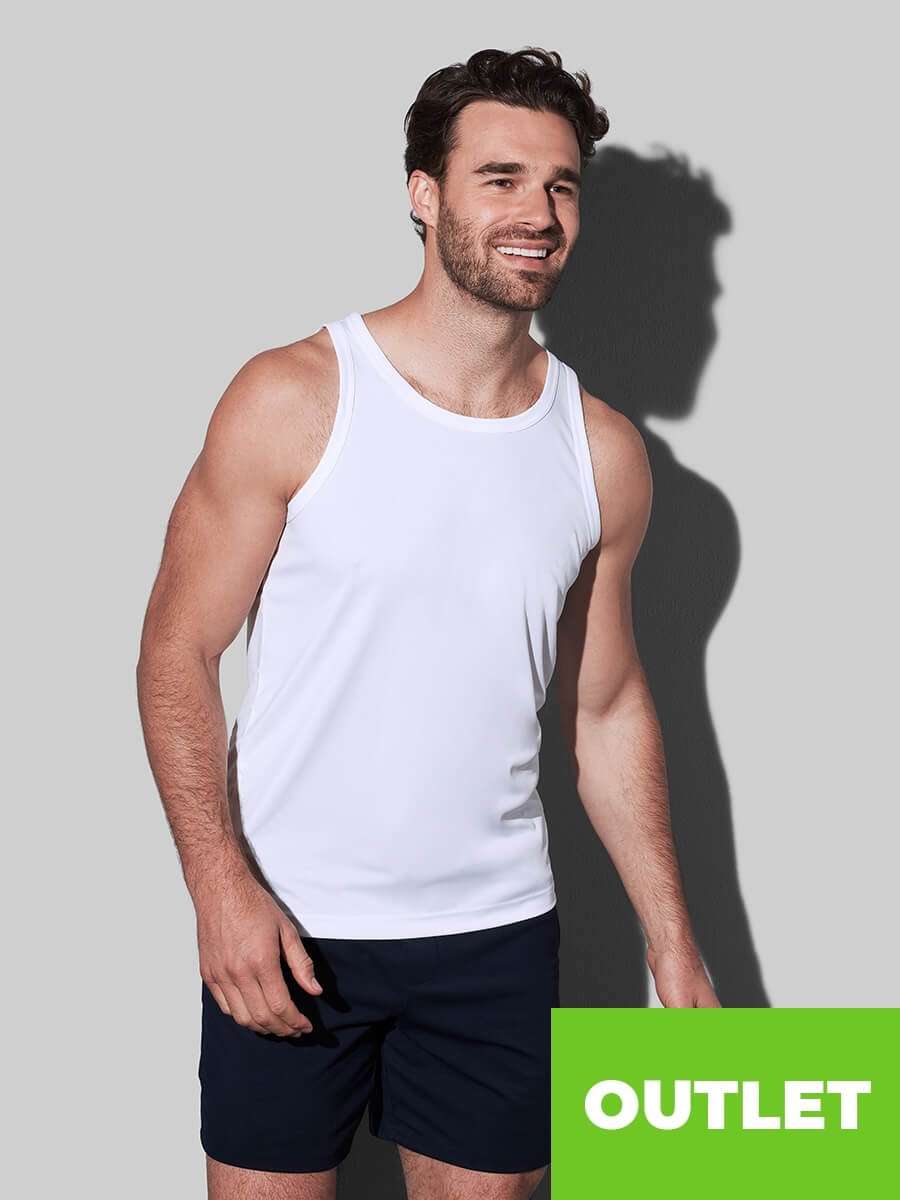 Tessuto morbido e leggermente lucido; Scollo e giromanica bordati; Marchio ACTIVE-DRY° denominativo riflettente sulla schiena; Cuciture laterali; Etichetta di manutenzione nelle cuciture laterali; Piccola etichetta delle taglie sul collo; Lavabile a 40°C
