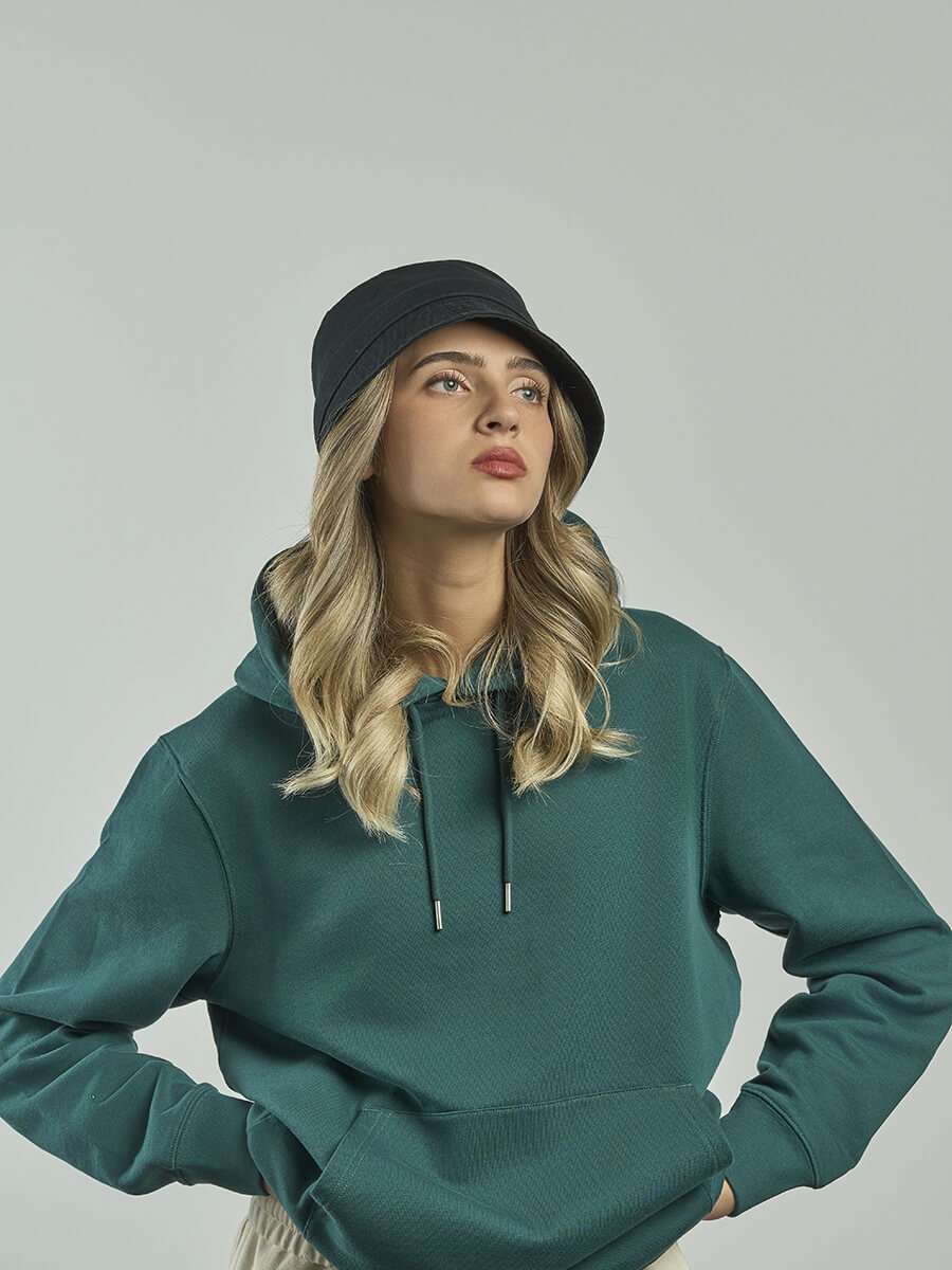 Modello da pescatore realizzato in 60% cotone riciclato certificato e 40% twill di cotone vergine; Tesa corta e spiovente che offre una protezionea 360° e può anche essere piegata per rendere il cappello tascabile quando non è in uso; Due occhielli sul retro per una maggiore ventilazione