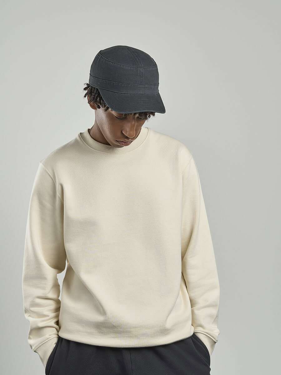 stile militare; pannello frontale non strutturato; visiera pre-curvata; chiusura in velcro; lavato in capo; 4 cuciture su visiera; parasudore in cotone