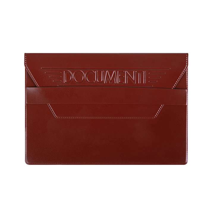 portadocumenti in PVC, marcatura neutra a secco, chiusura con pattina, tecnica di stampa consigliata: serigrafica - UV