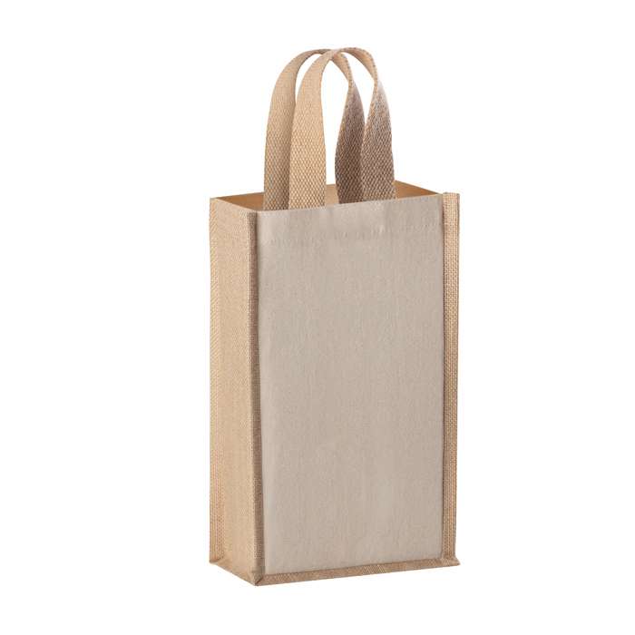 borsa porta bottiglia in cotone e juta laminata, manici corti, soffietto, 220 g/m2