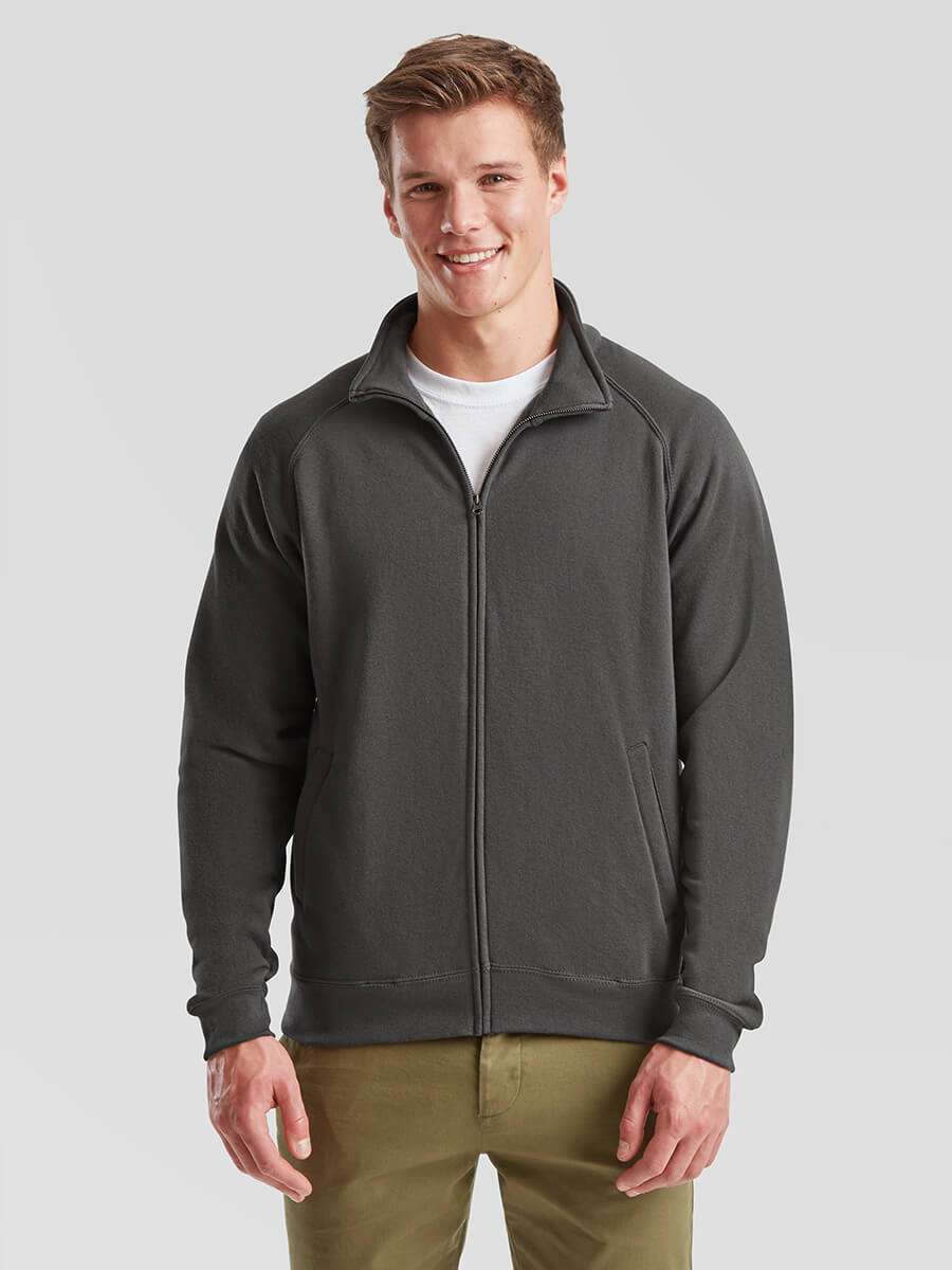 Cerniera nascosta per facilitare la stampa; Due tasche frontali; Fondo e polsini in costina cotone/Lycra®