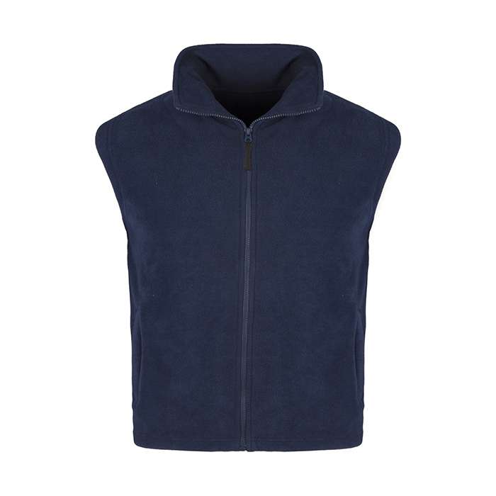 gilet in pile antipilling con collo a lupetto, zip lunga con cursore removibile, tasche laterali con zip a scomparsa, ribattitura doppio ago su collo, giromanica e orlo, nastro di rinforzo interno da spalla a spalla, colori reattivi, 270 grammi