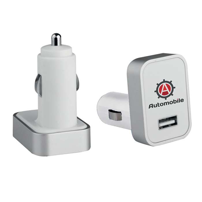 caricatore auto, ingresso (v) 12-24, uscita (v) 5, corrente di uscita massima (mA) 1000, tecnica di stampa consigliata: serigrafica - tampografica - UV