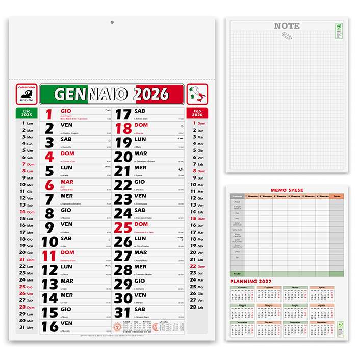 Edizione 2024, olandese mensile 12 fogli, carta patinata 70 gr., testata termosaldata, festivitàinternazionali, pagina note stampata sul retro, tecnica di stampa consigliata: adesivo digitale - serigrafica