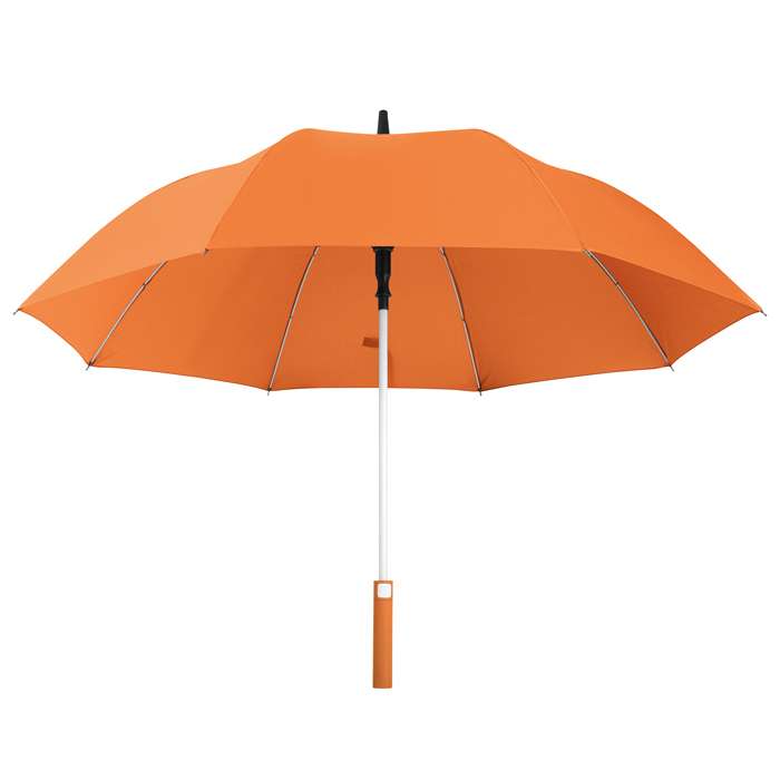 maxi ombrello automatico, sistema di apertura con meccanica di alta qualità, struttura in fibra di vetro, antivento, manico soft touch, chiusura con velcro, tecnica di stampa consigliata: serigrafica - transfer