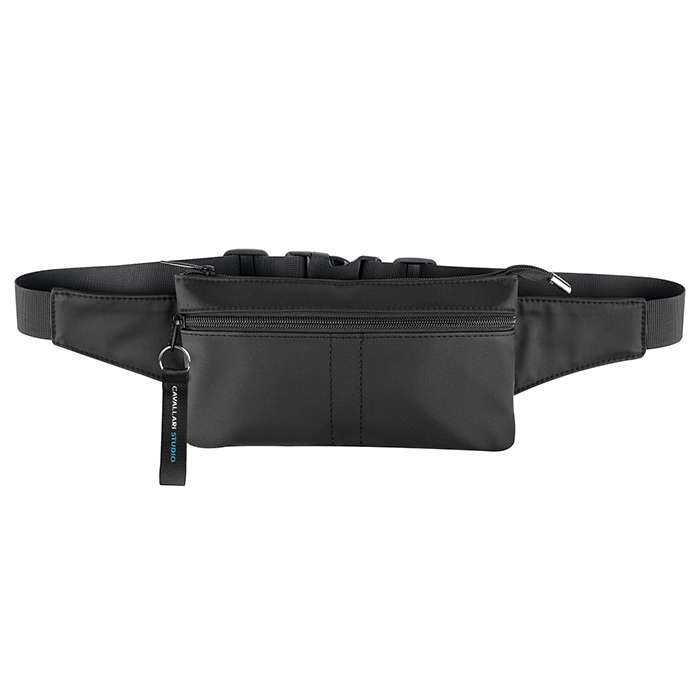 marsupio in 900D; materiale resistente all'acqua; compartimento con divisori; tasca anteriore con zip; cintura regolabile