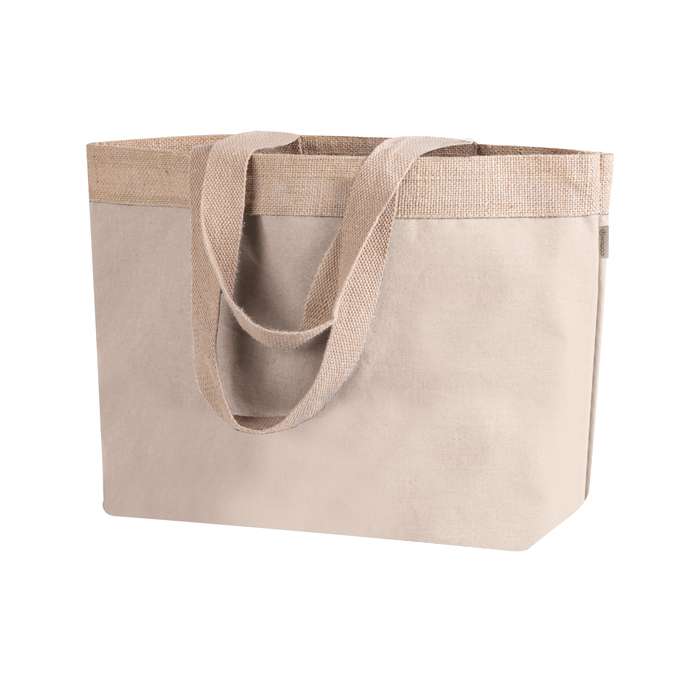 borsa in cotone laminato e juta, soffietto, manici lunghi, 220 GR