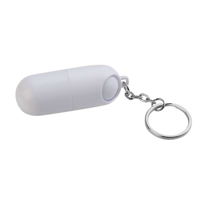 portachiavi/portapillole, anello piatto in metallo cromato, meccanismo di apertura a rotazione