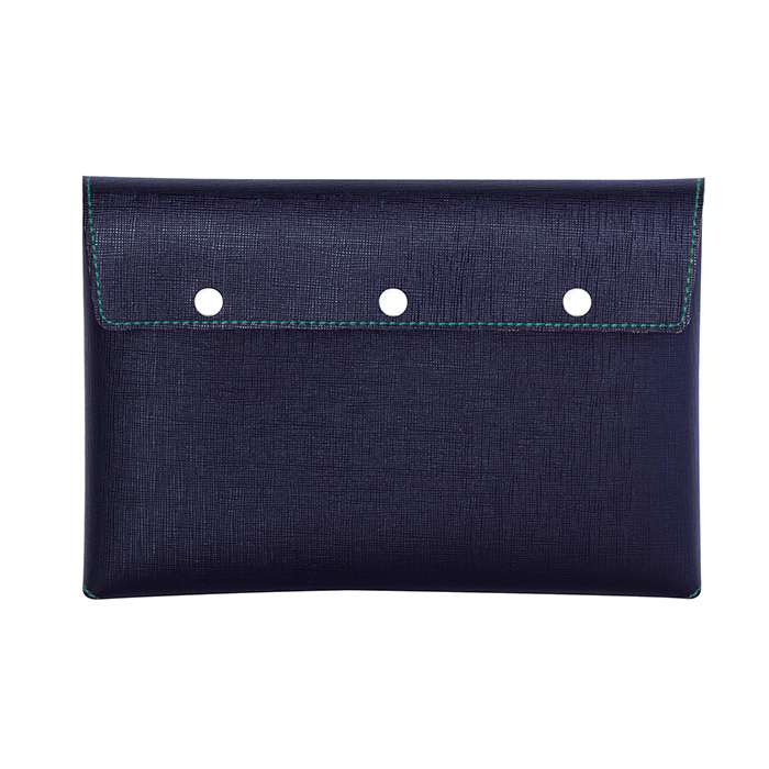 borsello pochette/portadocumenti bicolore, chiusura con bottoni a pressione, corredato di astuccio, shopper Cavallari su richiesta: CA820, tecnica di stampa consigliata: serigrafica - incisione - a caldo