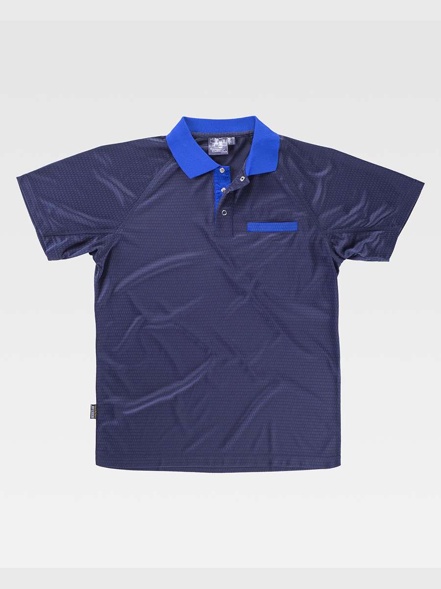Polo manica corta in tessuto tecnico; Collo classico con patta e tre bottoni automatici; Cuciture nascoste all'interno del collo, cuciture rinforzate e manica ranglan; Una tasca sul petto; Risvolto della tasca e colletto a contrasto; Sportivo, leggero e traspirante, asciugatura veloce; Collo in punto cannatè