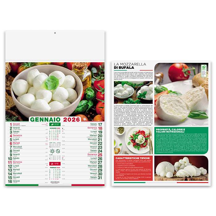 illustrato mensile 12 fogli, carta patinata 70gr, testata termosaldata, festivitàinternazionali, retro in quadricromia, tecnica di stampa consigliata: adesivo digitale - serigrafica