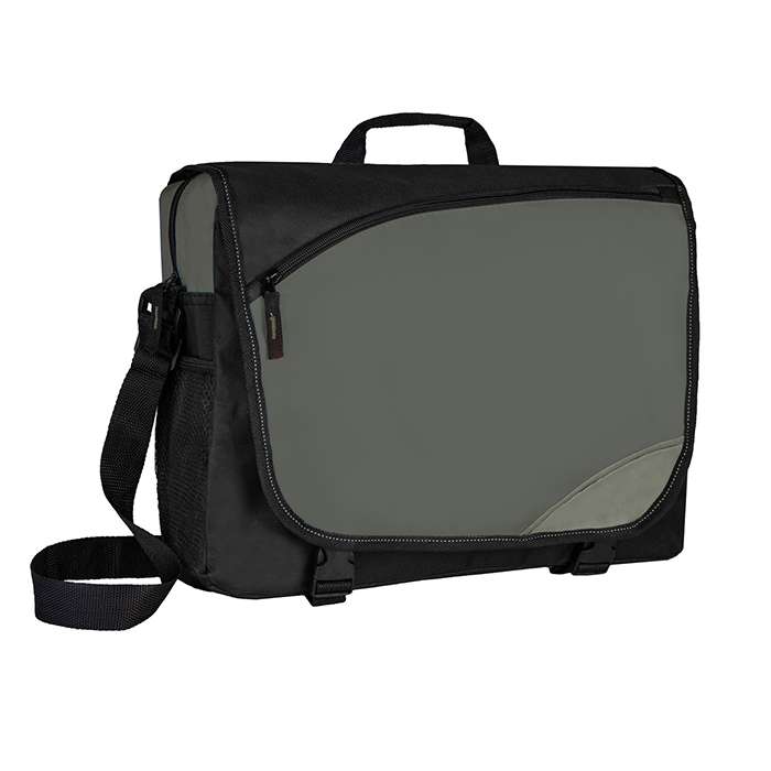 borsa bicolore portadocumenti poliestere 600D, interno multitasche, tasca esterna con cerniera, tracolla regolabile e manico, tecnica di stampa consigliata: serigrafica - transfer