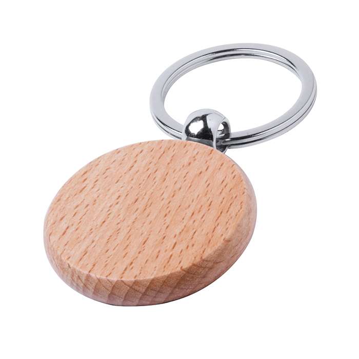 portachiavi ad anello piatto, corpo tondo in legno naturale, Tecnica di stampa consigliata: Tampografica - Serigrafica - Incisione - UV