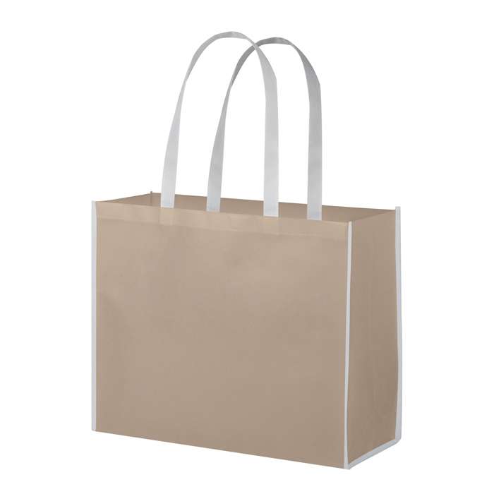 borsa shopping in tnt, colore naturale, manici lunghi colorati