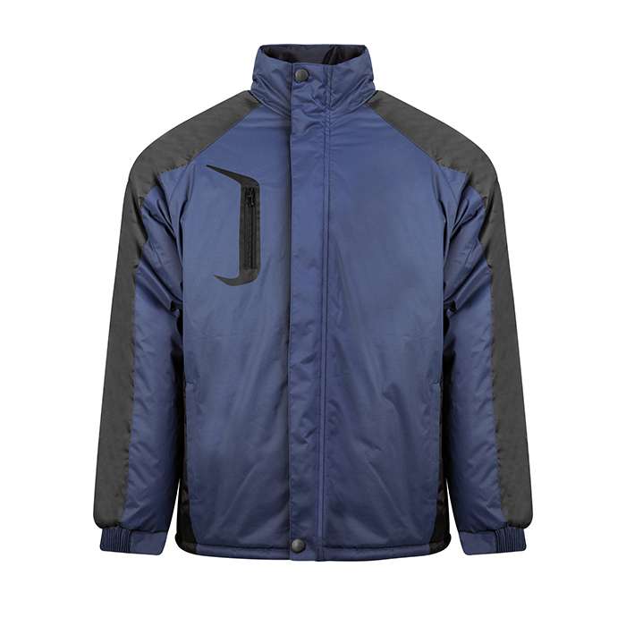 giubbino impermeabile waterproof, imbottitura extrapesante con interno trapuntato, polsini elastici, zip a scomparsa con cursore removibile, copricerniera con bottoni a pressione, 2 tasche laterali con zip, tasca frontale con zip (Lato DX), tasca interna