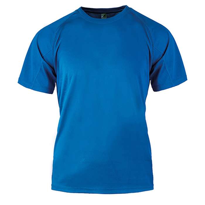 t-shirt bambino, tessuto mesh extra traspirante, trattamento cool plus, asciugatura rapida, girocollo a costina rinforzata, ribattitura doppio ago su collo, maniche e orlo, nastro di rinforzo interno, maniche raglan, colori reattivi, adatta alla stampa sublimatica, GI e VE colorazione fluo, 140 gr.