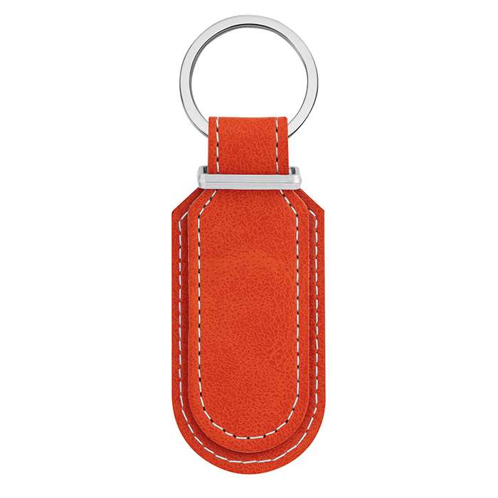 portachiavi con cuciture a contrasto, anello in metallo cromato, tecnica di stampa consigliata: serigrafica - tampografica - incisione
