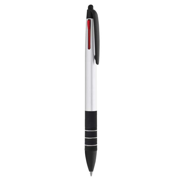 penna a sfera con touch, meccanismo a scatto, corpo in plastica e grip in gomma, 3 refills nero - blu - rosso