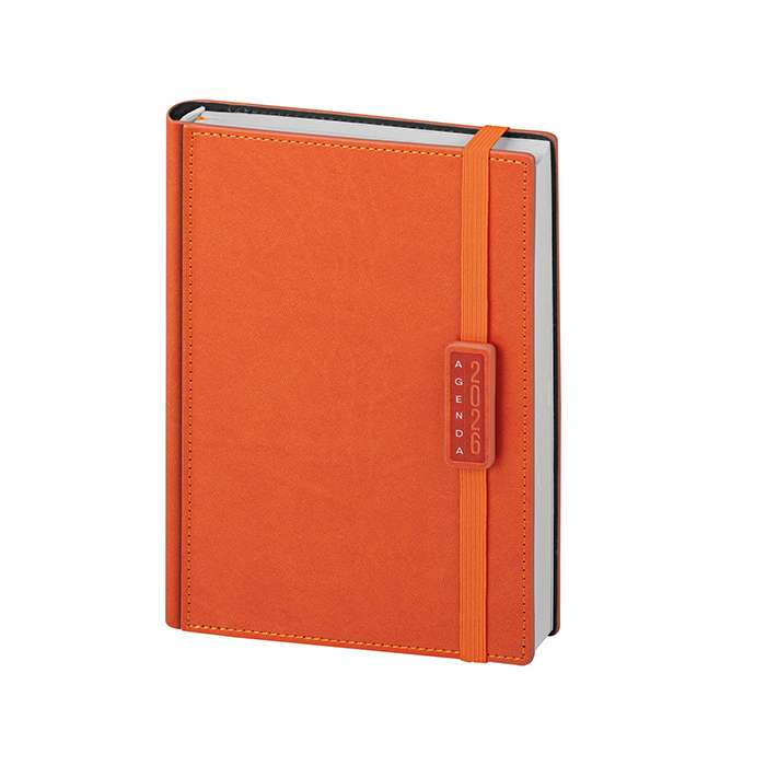 agenda giornaliera 324 pagine S/D/A, carta bianca con stampa a 2 colori, edizione multilingue: IT - GB - FR - DE - ES - PT, inserti informativi e rubrica telefonica, quadranti angoli tondi, inserto cartografico, segnapagine, chiusura con elastico, corredato di astuccio