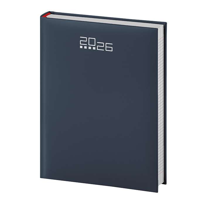 agenda giornaliera QUADRETTATA 324 pagine S/D/A, carta bianca con stampa a 2 colori, edizione multilingue: IT - GB - FR - DE, inserti informativi e rubrica telefonica, quadranti imbottiti, inserto cartografico e segnapagine, astuccio su richiesta PB531