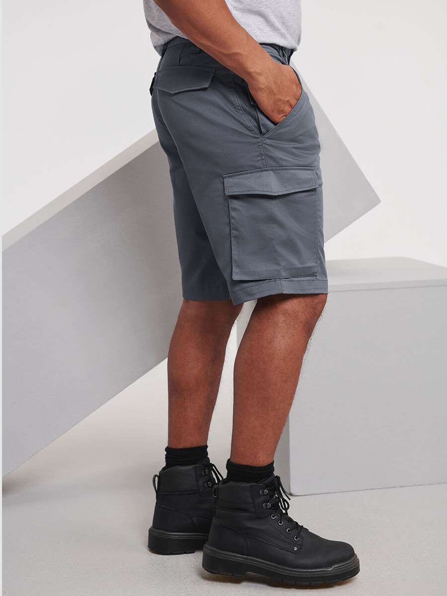 Bermuda multitasche; 2 tasche posteriori con patte; Tasca cargo sulla gamba destra; Piccola tasca aggiuntiva sotto la cintura; Vita elasticizzata per una vestibilità comoda