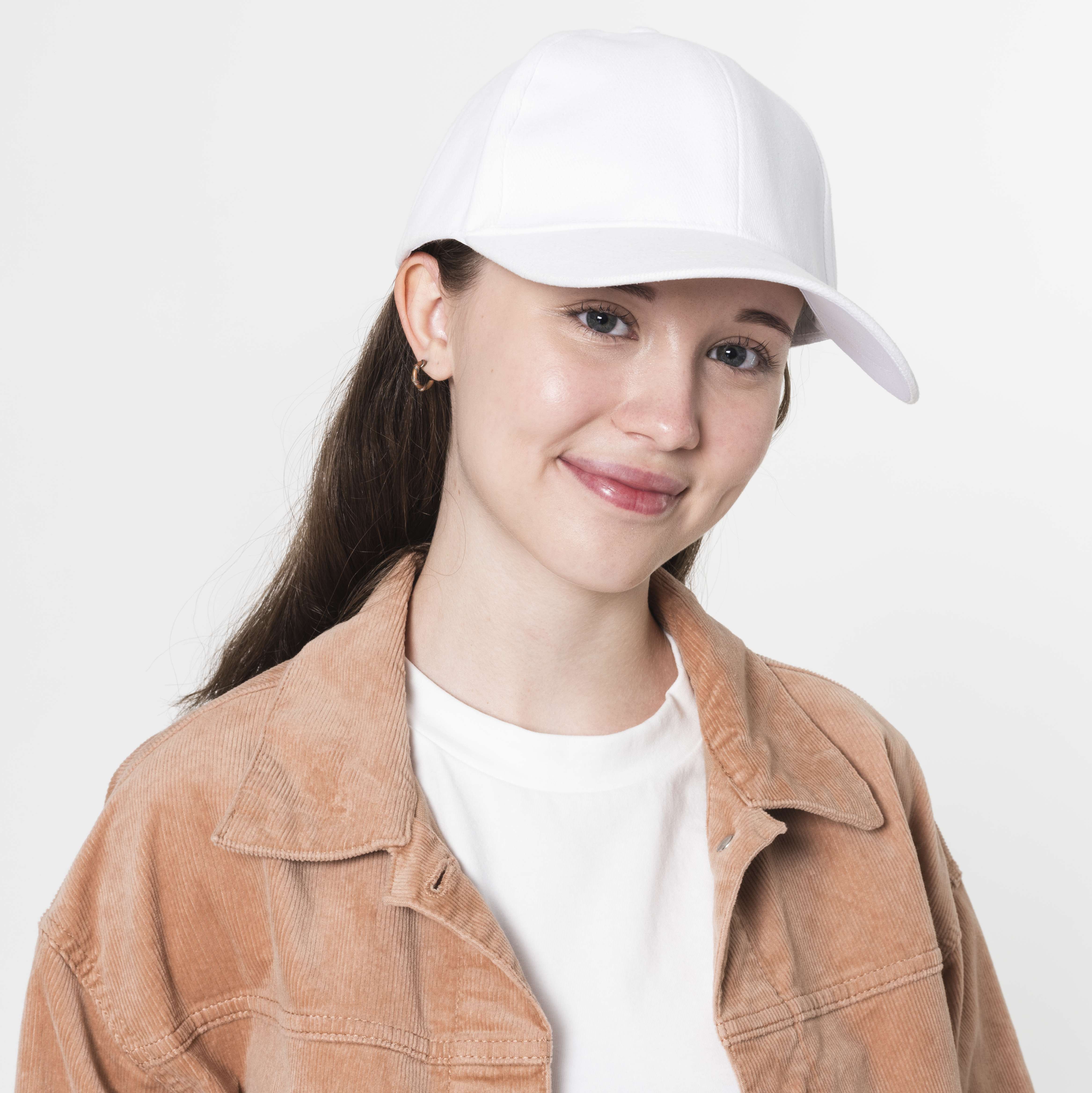 6 pannelli; occhielli ricamati; pannello frontale rinforzato; visiera pre-curvata; chiusura in velcro; 6 cuciture su visiera; parasudore in poliestere