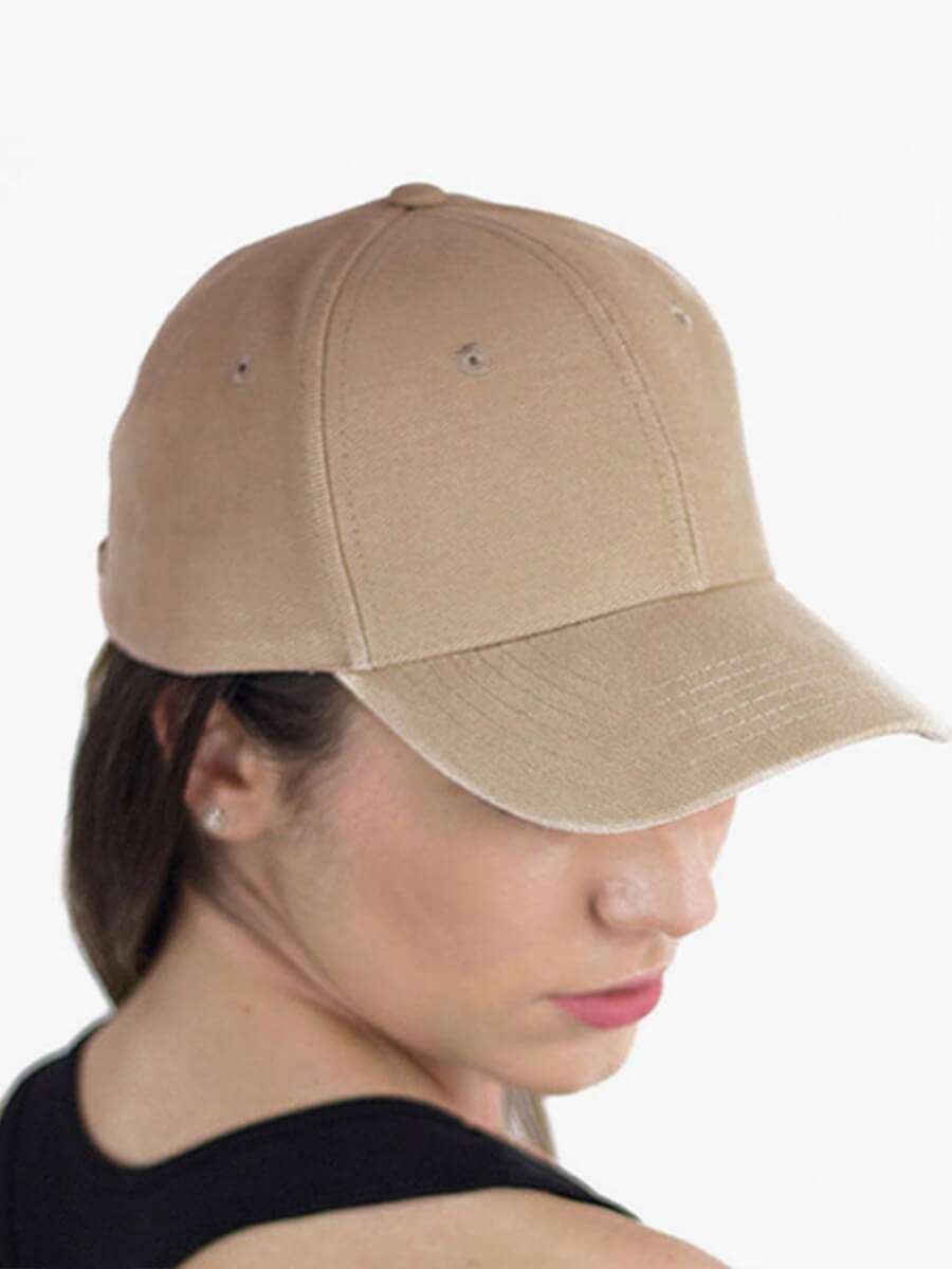6 pannelli; occhielli ricamati; pannello frontale rinforzato; visiera pre-curvata; chiusura in velcro; 4 cuciture su visiera; parasudore in poliestere
