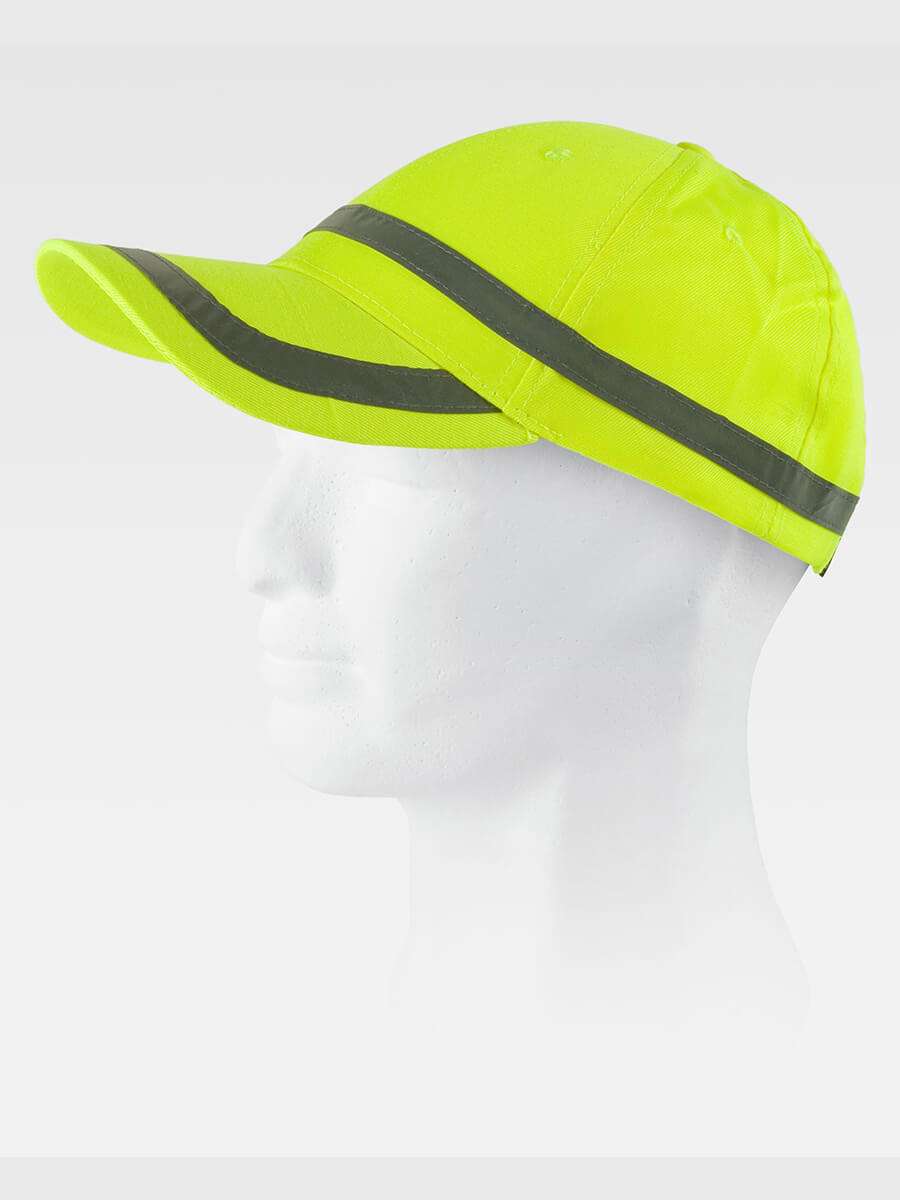 Cappello alta visibilità. Regolabile sulla parte posteriore. Bande riflettenti orizzontali