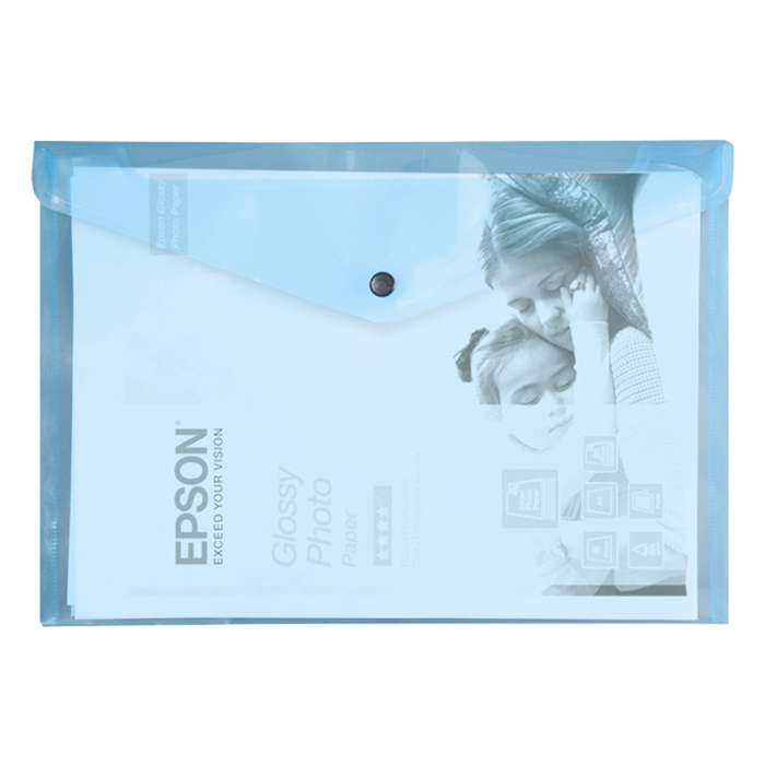 Cartellina portadocumenti in PP trasparente ex codice N8008, Formato A5 e chiusura con bottone a pressione, Tecnica di stampa consigliata: serigrafia