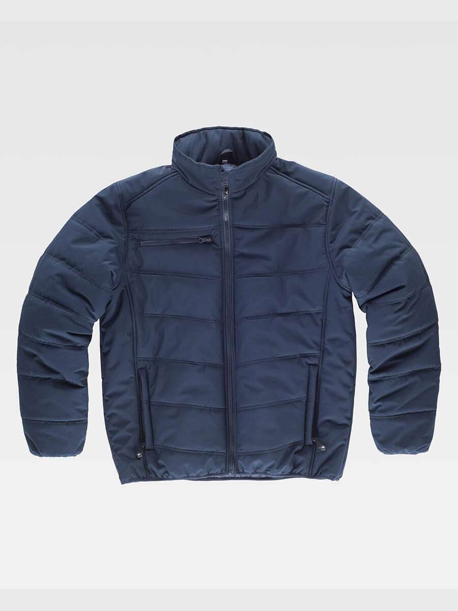 Giacca a collo alto imbottita con cappuccio regolabile; Cerniera nascosta da finta patta; Polsini e orlo rifiniti con sbieco elastico