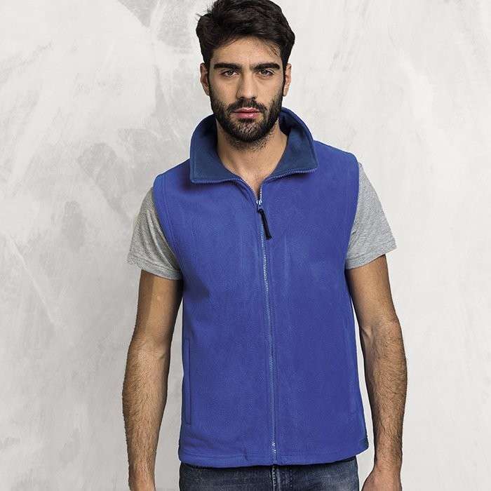 gilet in pile antipilling con collo a lupetto, zip lunga con cursore removibile, tasche laterali con zip a scomparsa, ribattitura doppio ago su collo, giromanica e orlo, nastro di rinforzo interno da spalla a spalla, colori reattivi, 270 grammi
